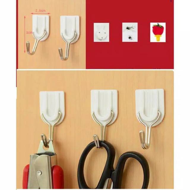 Gantungan hook multi pungsi - 1 set = 6 pcsDitempelkan dengan doble tape (sudah ada di dalamnya) tinggal ditempel di dinding yg r