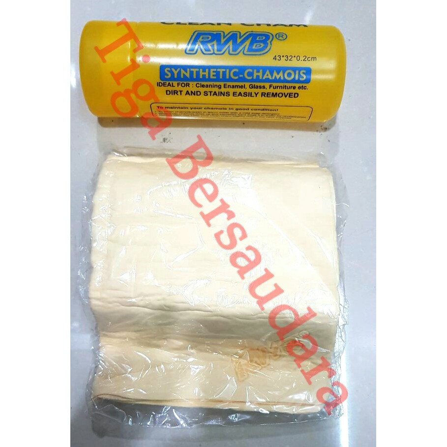 Lap Kanebo / Lap Syntetic Plas ChamoisMerk RWBukuran 43 cm x 32 cm x 0,2 cm- Lap chamois RWB terbuat dari serat berkualitas.- Berwarna kuning, motif polos dengan embos bertuliskan RWB.Lap chamois serat sangat cocok untuk membantu anda membersihkan permukaan semua jenis kendaraan, kaca helm, dan juga cocok untuk lap perabotan rumah tangga seperti kaca lemari, kaca rak piring, meja makan. Kanebo RWB dilengkapi dengan box plastik untuk menjaga kelembaban dari kain serat ini sehingga lebih awet dan tahan la