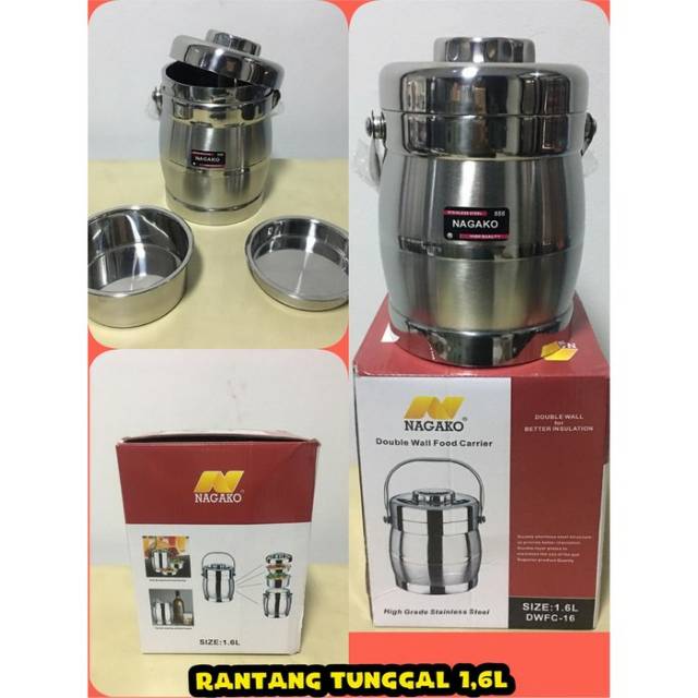 Rantang tunggal double wall food carrier NagakoMaterial : stainless Tahan lama keep warm hingga 3jam anKapasitas tersedia 1.6lt dan 2lt#rantangkeepwarm #nagako #rantangtunggal #goedan