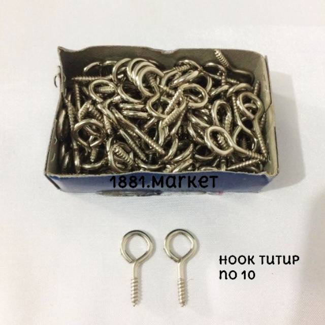 Hook tutup no 10Panjang 4 cmHarga 1 kotak isi krg lbh 120 pcs#hooktutup#hooktutupkotak#hooktutupmurah#screwhook#sekruptandatanya#cantolansan