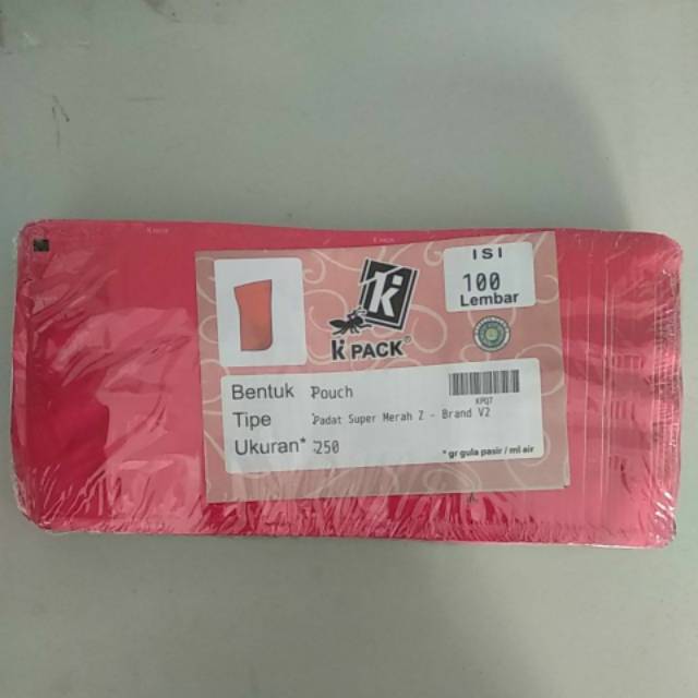 Harga diatas untuk 100 pcs -material alumunium foil (depan belakang foil warna merah)-tahan terhadap cahaya matahari-melindungi dari oksigen, udara dan kelembaban-kemasan ini di lengkapi zipper sehingga dapat ditutup kembali-kualitas sangat baikKemasan ini digunakan untuk produk seperti- Snack (kripik, krupuk, kacang-kacangan)- Produk Bubuk (kopi, bubuk minuman, bubuk puding)Isi tergantung dari jenis bubuknya, isi 250 gr dengan isi gula pasirTerm