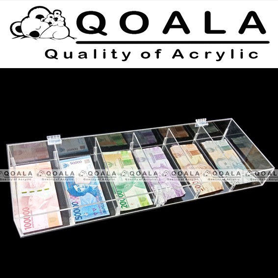 Ukuran barang bagian dalam : 48cm x 16cm x 4,7cmUkuran barang bagian luar : 48,6cm x 16,6cm x 5cmUkuran paket : 52cm x 20cm x 9cmTerbuat dari bahan acrylic bening dengan ketebalan bahan 3mm.Manfaat dari produk ini bisa digunakan untuk merapihkan dan mempercantik tampilan bagian dalam laci kasir tempat usahamu agar lebih rapih dalam penataan penyimpanan uangnya. Dan minim resiko kerusakan akibat umur dan suhu ruang, bahkan jika terjadi bencana alam seperti banjir juga tempat uang acrylic ini tidak akan rusak dengan mudah.Produk ini juga bisa dimanfaatkan untuk tempat penyimpanan lainnya sesuai kebutuhan.“TEMPAT UANG YANG KECE, YANG BISA MEMBANTUMU MERAPIHKAN UANG DI KANTOR ATAU TEMPAT USAHAMU YANG KECE JADI MAKIN KECE”Produk ini terkena berat volume, bukan berat aslinya.Untuk ukuran lain bisa custom via chat.Catatan :-Harga barang sudah termasuk packing aman menggunakan kotak sterofoam lembaran setebal 2cm.-Disarankan menggunakan jasa kurir yang paling cepat sampai dan membeli produk tambahan packing kardus di toko kami untuk mengurangi resiko kerusakan.Link produk tambahan packing kardus : https://shopee.co.id/TAMBAHAN-KARDUS-PACKING-i.4918911.7422810163-Barang sudah dicek sebelum pengiriman, jika ada kerusakan akibat pengiriman diluar tanggung jawab