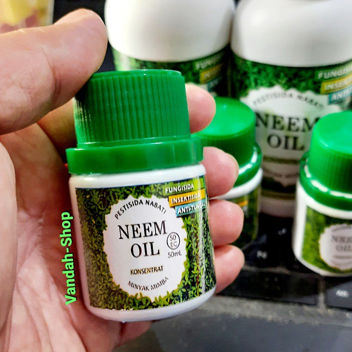 ------------------------------------------Neem Oil / Minyak MimbaPestisida Nabati Harga per botol (Repack isi : 50 ml)------------------------------------------Pure Neem Oil merupakan produk utama yang dapat dijadikan berbagai produk-produk lain, mulai dari produk kesehatan, pertanian, kosmetik sampai produk sabun.Pure Neem Oil diproses tanpa menggunakan tambahan bahan kimia baik selama pra-proses, maupun pasca-proses. Proses yang dilakukan hanya menggunakan perasan dengan mesin (cold press) dan filtering yang terdiri dari empat belas tahap sehingga terjamin kualitasnya.Manfaat dan Kegunaan :PertanianSebagai pengontrol hama tanaman. Dengan menambahkan emulsifying agent, Pure Neem Oil dapat langsung dipergunakan untuk menyemprot tanaman baik sebagai pengobatan maupun pencegahan.KesehatanSebagai obat penyakit kulit. Dengan mengoleskan pada bagian kulit yang sakit secara langsung. Pure Neem Oil efektif untuk berbagai penyakit kulit seperti gatal, buduk, kudis, eksim, dan banyak lagi.Pest Control dan Termite ControlPure Neem Oil dapat digunakan untuk menyemprot hama dan serangga yang berada di sekitar lingkungan, tambahkan emulsifying agent dan langsung dapat digunakan (20-70 ml Neem Oil per 10 liter air) serta dapat ditambahkan aroma yang dikehendaki ke dalamnya sesuai kebutuhan seperti lavender oil atau citronella oil.Pure Neem Oil juga dapat melindungi kayu dan bambu dari rayap (Termite Control). Balurkan Pure Neem Oil pada bagian kayu atau bambu.Pet CarePure Neem Oil bisa digunakan sebagai bahan antiseptik. Campurkan Pure Neem Oil pada larutan sabun/shampoo yang digunakan untuk memandikan binatang kesayangan Anda. Pure Neem Oil juga dapat digunakan langsung untuk mengobati kulit binatang Anda yang terkena penyakit dengan jalan mengoleskannya langsung pada bagian yang sakit dari kulit binatang Anda.Kosmetik dan ToiletriesPure Neem Oil dapat digunakan sebagai campuran bahan aktif untuk pembuatan berbagai produk kosmetik, sabun, shampoo, pet cares soap/shampoo dan banyak