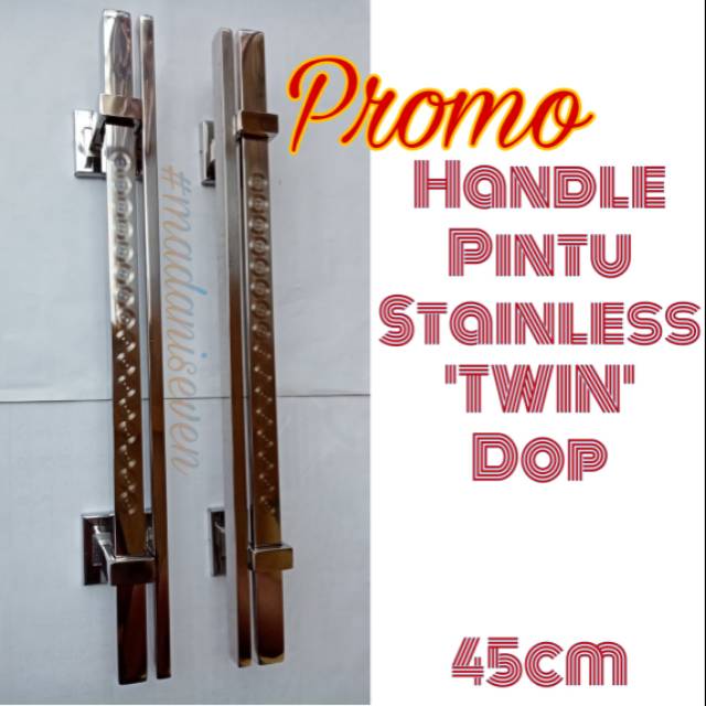 Handle Pintu / Tarikan Pintu Stainless Twin Lurus1 pasang handle ( 2pcs ) Bahan : Stainless (Asli produk Juwana Kualitas terbaik) Ukuran : - Panjang 45 cm- Tinggi 6 cmBarang produksi sendiri, kualitas mutu terjamin, danPasti murah. Sudah termasuk baut mor untuk pemasangan handlePengemasan produk menggunakan bubble wrap. Selalu tanyakan ketersediaan stok barang. Terima kasih. Selamat belanja. #handlepinturumah#tarikanpinturumah#handlestainless#promom