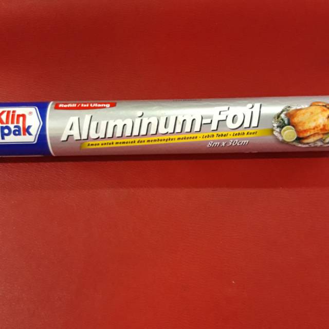 Aluminium foil refill merek klinpakukuran panjang 8mtr Lebar 30cmDigunakan untuk :- memanggang makanan - membungkus makanan- menjaga kebersihan makanan- menjaga tekstur, aroma dan rasa maka