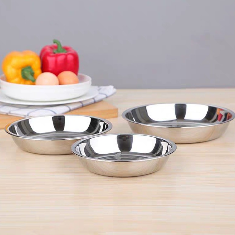 Piring makan stainless steelsBahan tebalAnti karatTersedia 2 ukuran: diameter piring20cm 22cm 24cm 26cm#piring #piringmakan #piringmakanstainlesssteel #piringstai